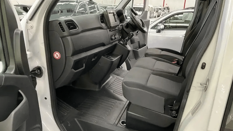 The 2020 Renault Master Pro is a versatile and practical commercial van designed to meet the needs of businesses requiring reliable cargo transportation. Its robust exterior features a spacious and functional design, with a large cargo area that offers ample space for tools, equipment, or goods. Inside, the Master Pro provides a comfortable driving environment with ergonomic controls, a user-friendly dashboard, and available modern features such as a touchscreen infotainment system, Bluetooth connectivity, and rearview camera for easier maneuvering. Powered by a durable diesel engine, it delivers strong performance, excellent torque, and impressive fuel efficiency, making it well-suited for urban deliveries and long-distance hauls alike. Its high payload capacity and customizable options make the Renault Master Pro a dependable and adaptable choice for commercial use, combining practicality with durability.