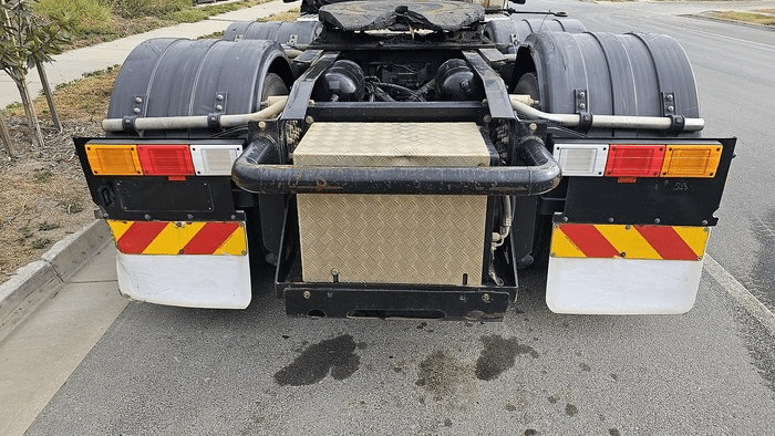 Wear and tear for a 2013 model truck is evident